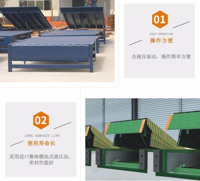 9、電動液壓、操作簡單、高度可任意調節,調節范圍大,提高裝卸效率,節省人力。讓您的工作更加方便、省力及節約成本。