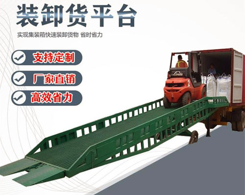 濰坊登車橋-濰坊移動(dòng)式登車橋-各大物流碼頭的8噸裝卸過橋-液壓登車橋廠家-移動(dòng)式登車橋是與叉車配合使用的貨物裝卸輔助設(shè)備,可根據(jù)汽車車廂的高低調(diào)節(jié)高度,叉車可以直接通過本設(shè)備駛?cè)胲噹呐垦b卸,僅需單人作業(yè),即可實(shí)現(xiàn)貨物的快速裝卸。它使企業(yè)減少大量勞力提高工作效率。
